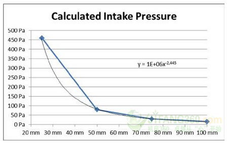 圖2:壓降與進氣口高度曲線為0.2立方米/秒。