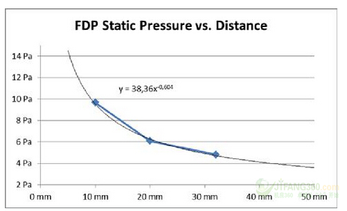 圖11:EMI屏蔽進氣口的距離與風(fēng)扇的進氣氣流分布:30毫米(0.2立方米/秒)。